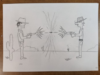 My process begins with an idea that pops into my head. Sometimes the idea comes from seeing a new aspect of color, perspective, spatial visualization, lighting, contrast, balance, etc. in another art piece. I may take something from that and reimagine it in my own way. Sometimes an idea comes from a moment of good light/shadow. Or it comes from a funny phrase I think of or hear. I capture the initial idea by writing it down or sketching it out. If the idea seems lame when I revisit it, I discard it. If I still like it, I bring it to life.